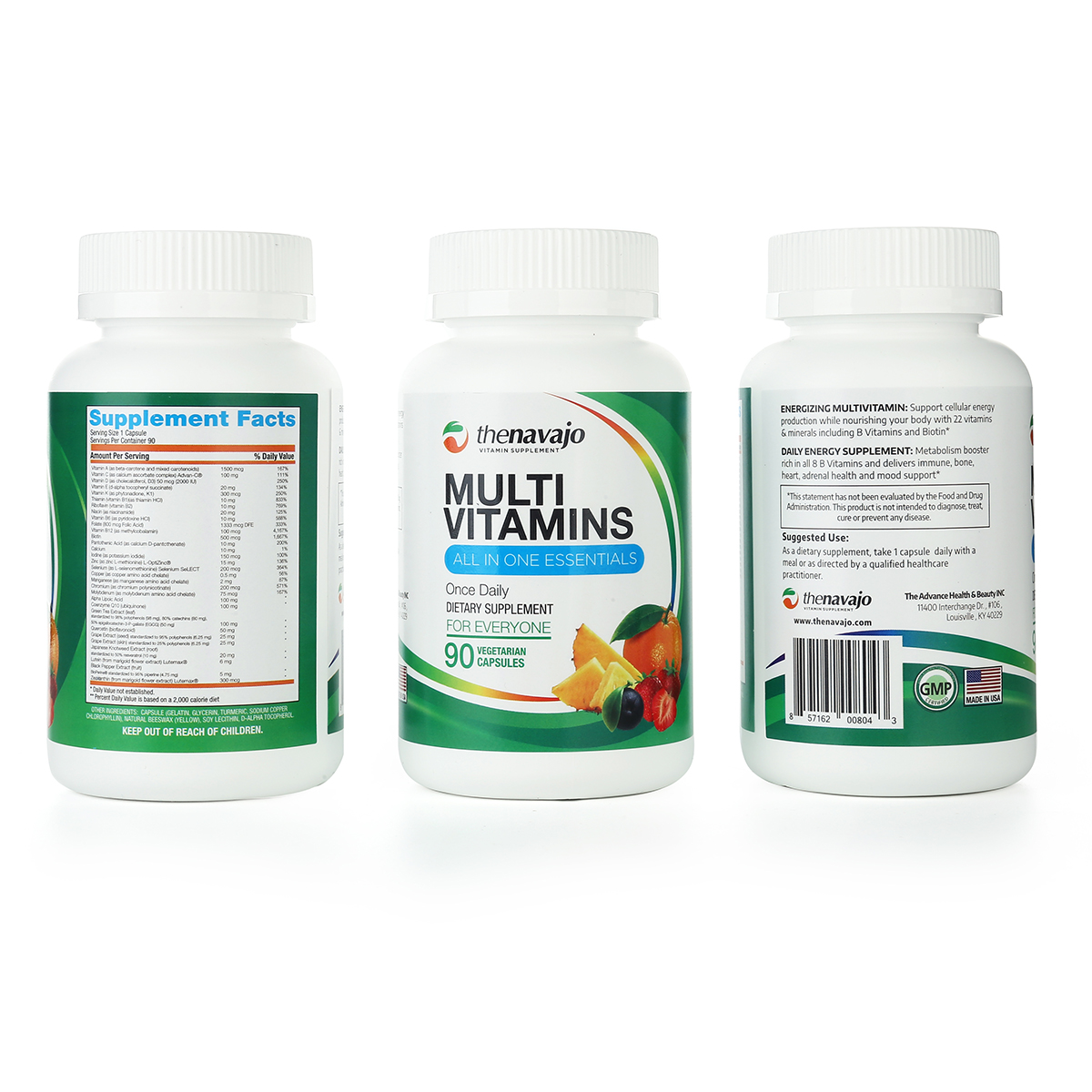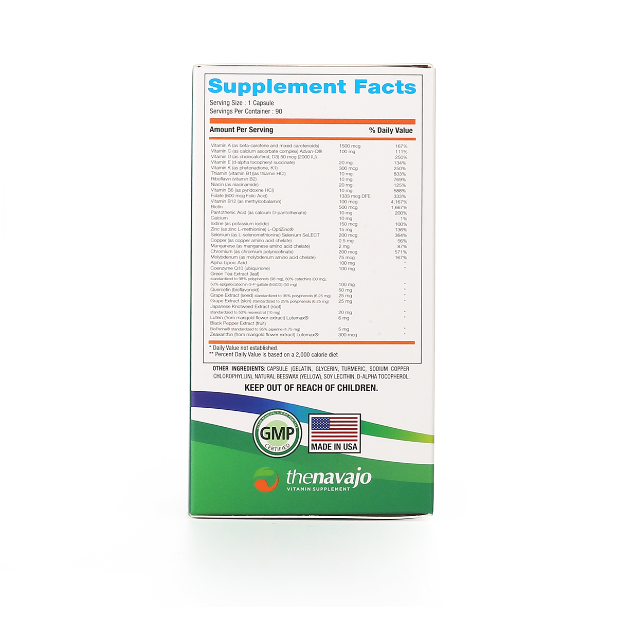 NAVAJO MULTI VITAMINS 90 Caplets | Item# SP0007 share PRODUCT DESCRIPTION Navajo Multi Vitamins is 100% manufactured in the US. The product is a combination of 22 vitamin ingredients and many minerals, helping to enhance the resistance, optimal body protection. Using just 1 tablet per day, Multi Vitamins will satisfy the body's essential micronutrient needs, helping to regenerate energy. Values equivalent to the nutrients found in 15 different fruits and vegetables. INCREASE THE MAXIMUM RESISTANCE AND BODY PROTECTION Product contains 22 essential vitamins, minerals, herbs and antioxidants to help strengthen overall health, increase optimal immunity, replenish energy, and balance nutritional deficiencies in your diet. Multivitamins double the amount of Vitamin D3 found in other multivitamins formulas on the market. Fruit extracts include: Grape seeds, blueberries, raspberries, plums, sour cherries and strawberries, ... maximize antioxidant capacity. Content 10mg Resveratrol supports the protection of cardiovascular health, reducing mortality from heart disease. WHY SHOULD YOU CHOOSE DRINK MULTI VITAMINS DIRECTLY IMPORTED FROM US? As a product to help strengthen resistance, renew the optimal energy for the body. Multi Vitamins help support the prevention of infectious diseases such as: Flu, immune system decline, ... Natural and healthy natural ingredients such as CoQ10, Vitamin E, Turmeric, Lutein, Zeaxanthin, Grape Seed Extract, Alpha Lipoic Acid and Green Tea Extract, ... The content of oral tablets contains over 10,000 units, supporting 15 times the resistance of fruits and vegetables you eat daily. Full of optimal B-complex vitamins, help balance and support health, produce energy, enhance immunity, nourish each cell. Products usually provide many groups of multivitamins but do not include the amount of calcium and magnesium needed. Reverse Multi Vitamins products provide both calcium and magnesium to support the health of skeletal muscle, heart and nervous system. Formula of products without iodine, artificial colors, artificial flavors, preservatives or other allergens, absolute safety for health. Does not contain iron: according to many studies, Fe in most supplements only makes the aging process in adult men and postmenopausal women happen faster. Products that are researched and produced directly in the US, quality, design, packaging ... are strictly controlled according to international standards, certified by the origin and product quality. and the US GMP accreditation body, so customers can be assured. You may also like NAVAJO COLLAGEN Item# SP0001$ 155.99$ 199 NAVAJO GLUTATHIONEItem# SP0002$ 155.99$ 199 NAVAJO MOVEFLEXItem# SP0003$ 155.99$ 199 NAVAJO SUNCAREItem# SP0004$ 155.99$ 199 NAVAJO WEIGHT LOSS AIDItem# SP0005$ 155.99$ 199 NAVAJO ZINCItem# SP0006$ 155.99$ 199